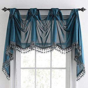窗幔(中片):中片是指介于飘窗小片和客厅卧室大片之间大小的窗幔,例如厨房,餐厅,半高的窗幔。